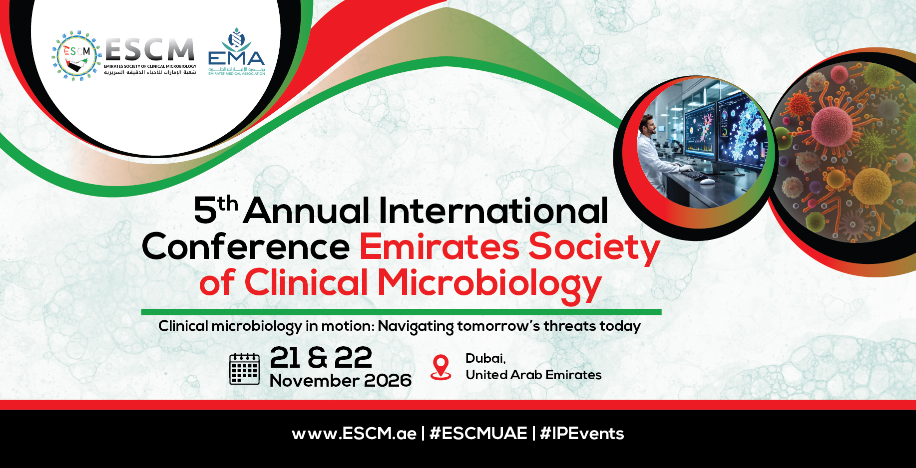 We are pleased to invite you to our 5th Annual Conference of the Emirates Society of Clinical Microbiology (ESCM). The conference is scheduled to take place from November 21st to 22nd 2026, in Dubai, United Arab Emirates